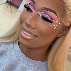 The application for this service includes the “Bhad Gyal” Glam. This service is best for my Material Girls that love a full make up application with top lashes, bottom lashes, and a dramatic eyeshadow, bottom, lashes, rhinestones, or a glitter lid is included into this extravagant deal.